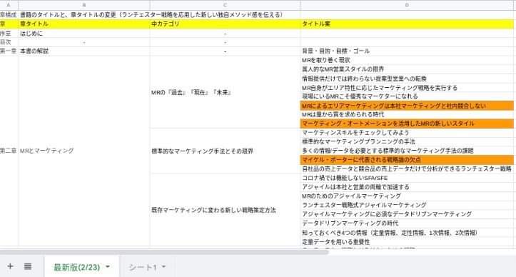 このように、章の構成と伝えたいポイントの強弱を整理したもの(=プロット)と認識してください。